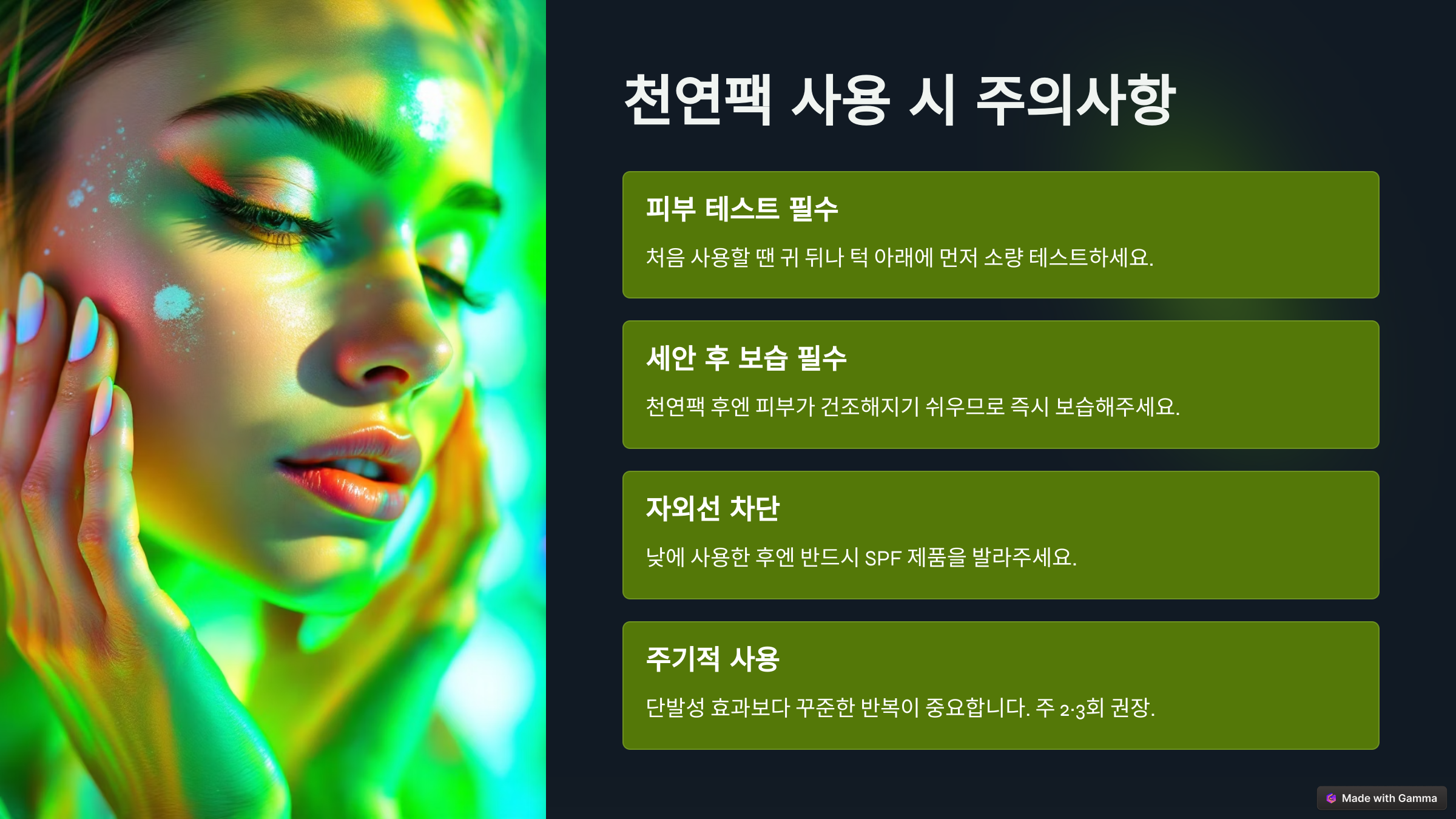 ✅ 천연팩 사용 시 주의할 점 요약