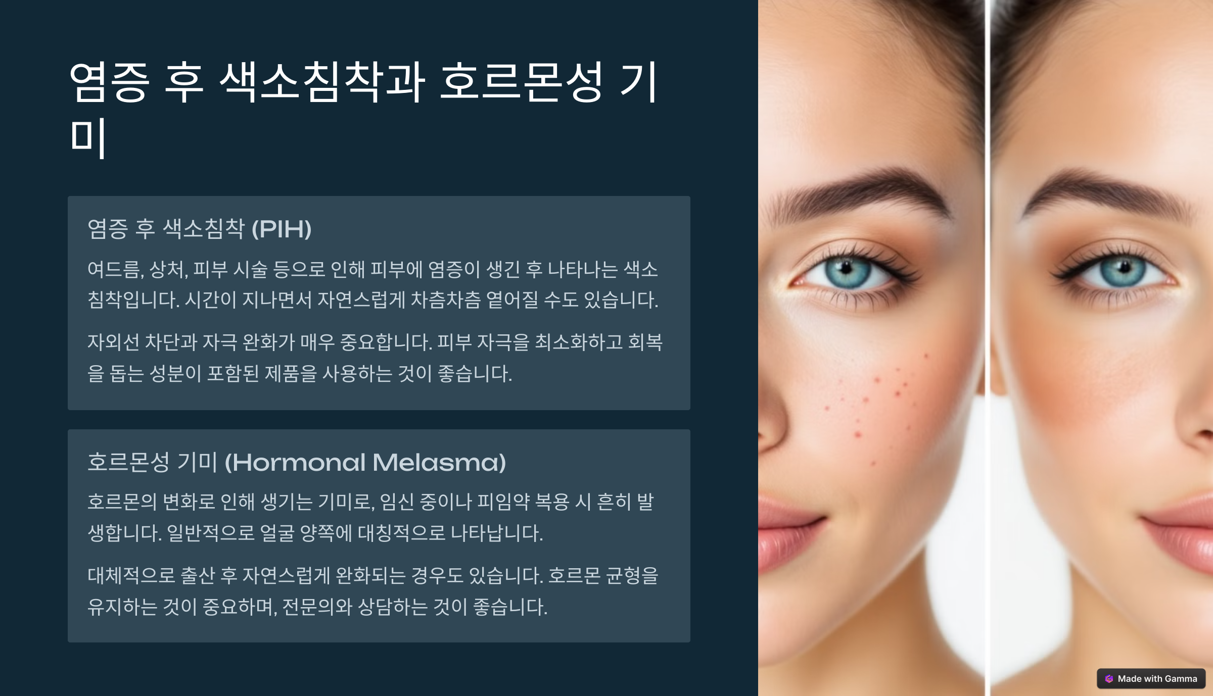 핵심 키워드: 염증 반응, 여드름 자국, 외상 후 착색, 자연 완화 가능성, 자극 최소화