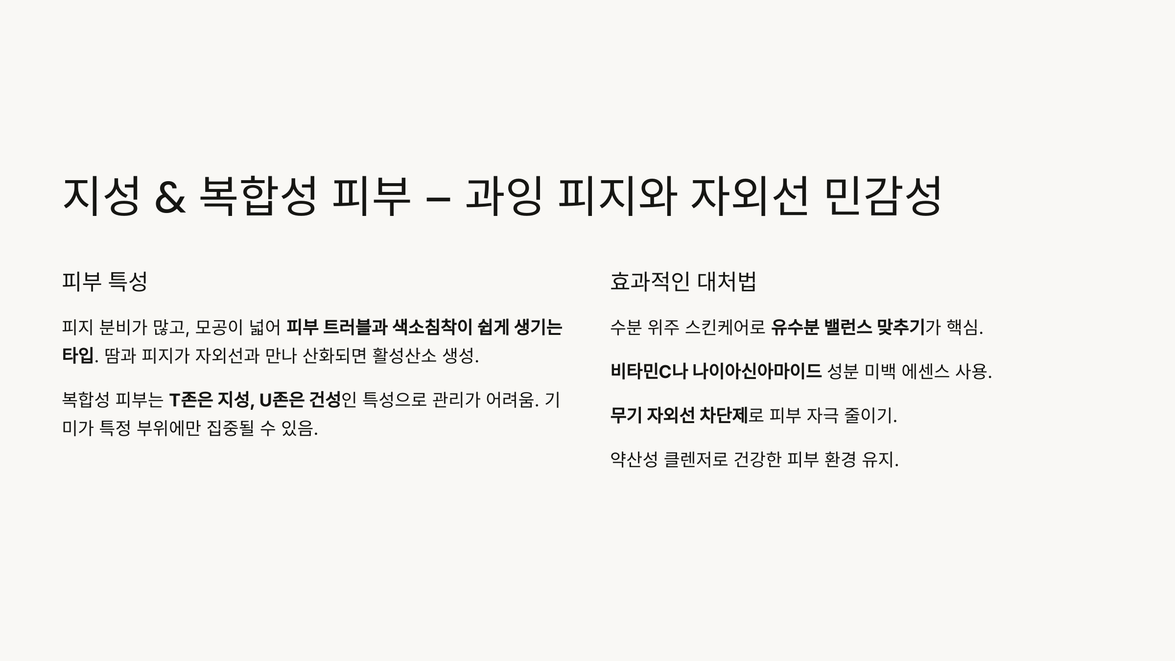 🌕 2. 지성 & 복합성 피부 – 과잉 피지와 자외선 민감성
