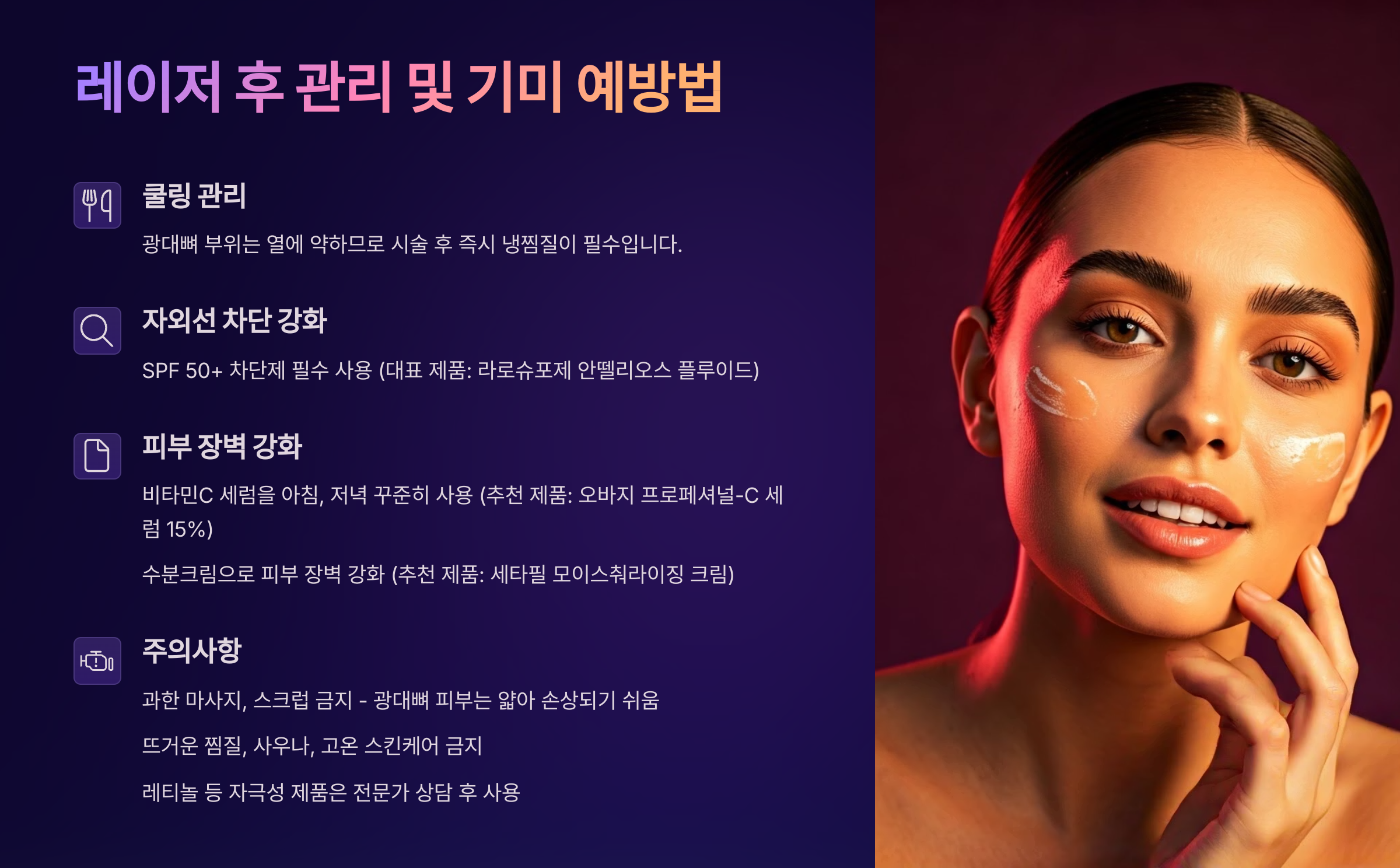 → 광대뼈 부위는 열에 약하므로 시술 후 즉시 냉찜질 필수 - 자외선 차단을 강화할 것