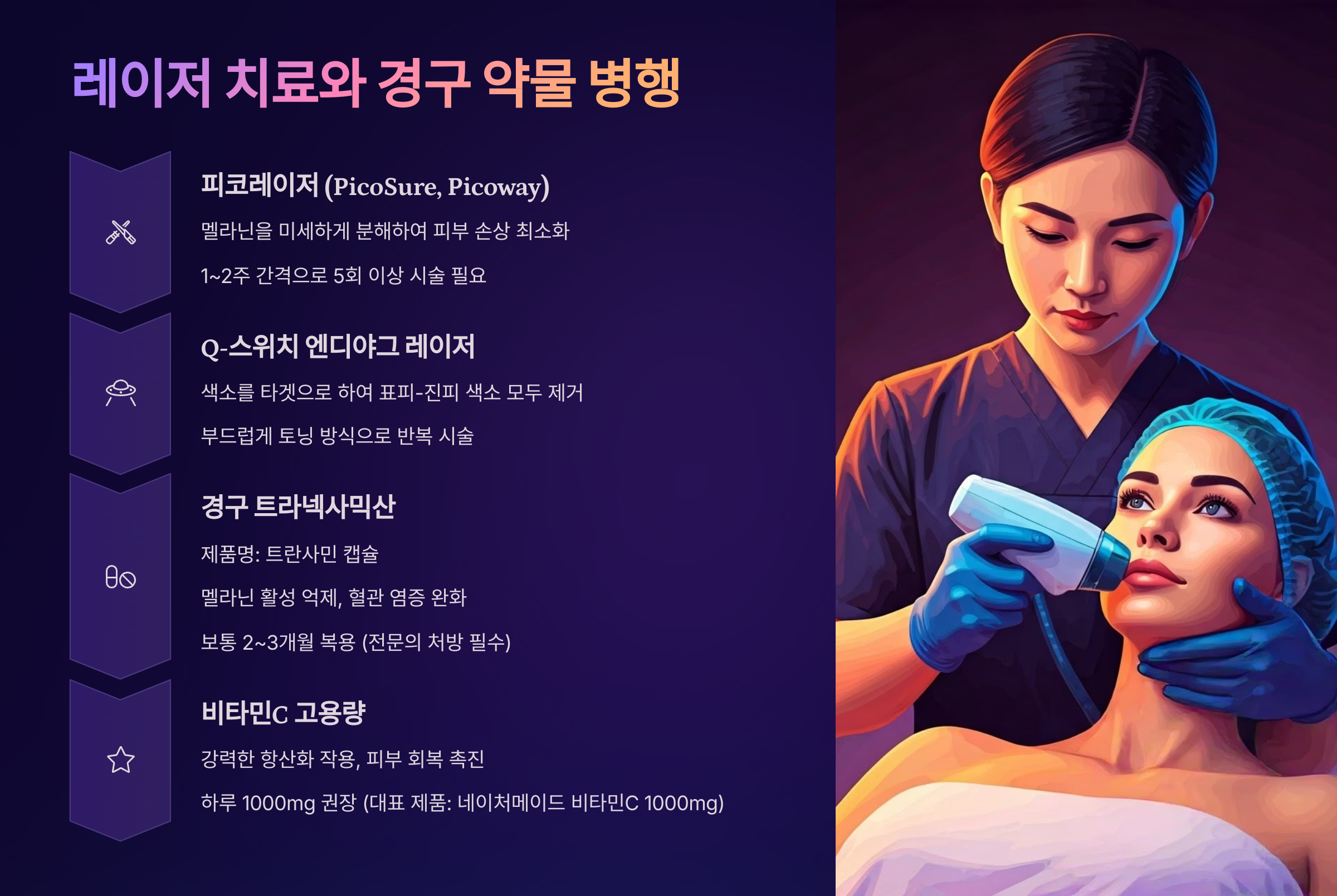 기미 치료에 사용되는 구체적인 약품 및 제품