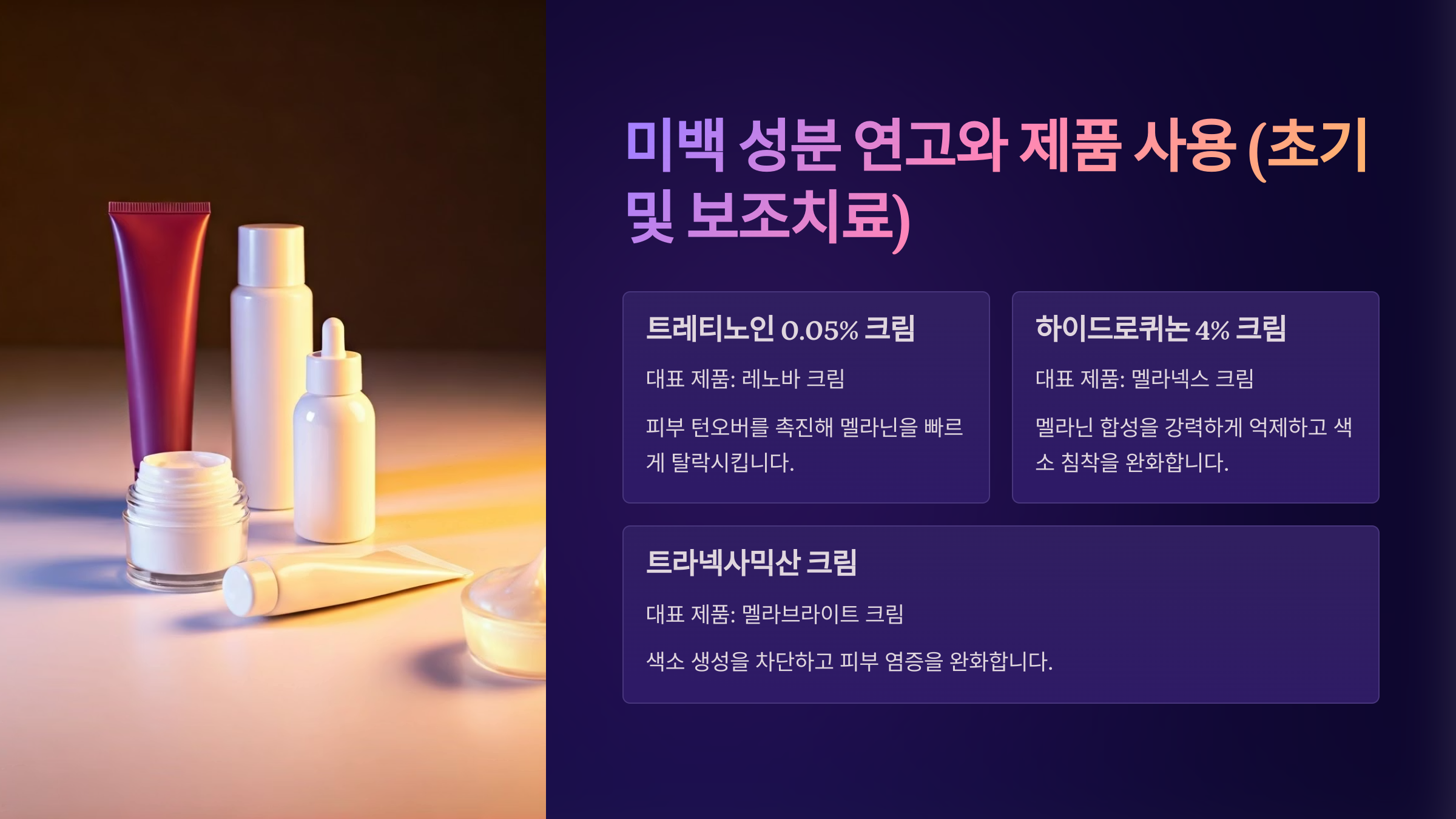 1. 미백 성분 연고와 제품 사용 (초기 및 보조치료)
